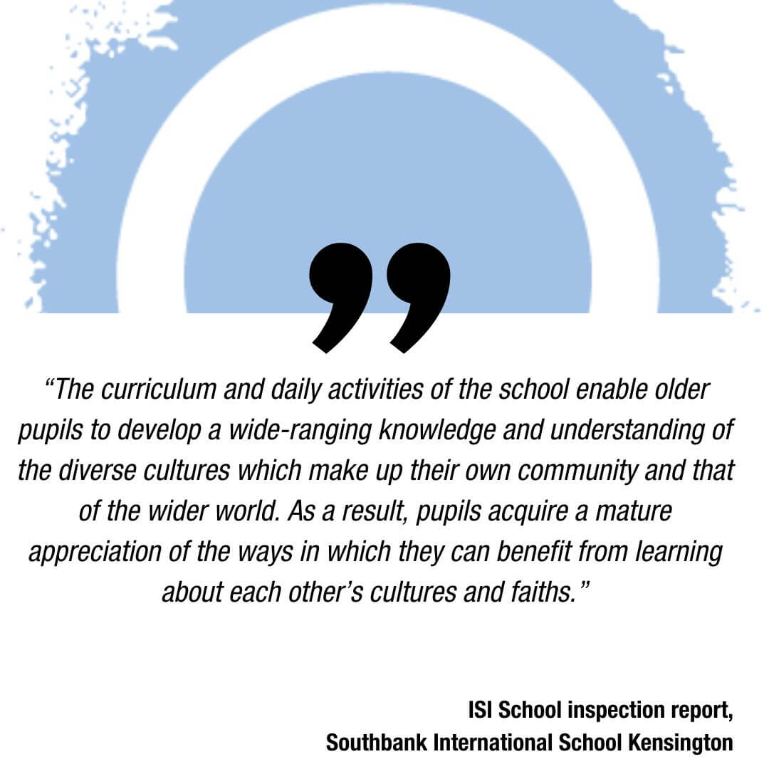 ‘enable older pupils to develop a wide-ranging knowledge and understanding of the diverse cultures which make up their own community and that of the wider world. As a result, pupils acquire a mature appreciation of the ways in which they can benefit from learning about each other’s cultures and faiths.”